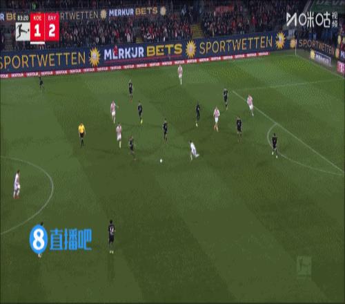 第84分钟,凯恩长传策动进攻,路易斯·迪亚斯突入禁区横向盘带摆脱后分球,伦纳特·卡尔无人盯防轻松推射破门。