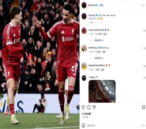 体育播报1月13日宣 利物浦在本轮足总杯4-1击败巴恩斯利,维尔茨和埃基蒂克替补相互传射。