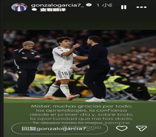 体育播报1月13日宣 在阿隆索从皇马下课后,被他提拔的小将贡萨洛·加西亚发文告别。